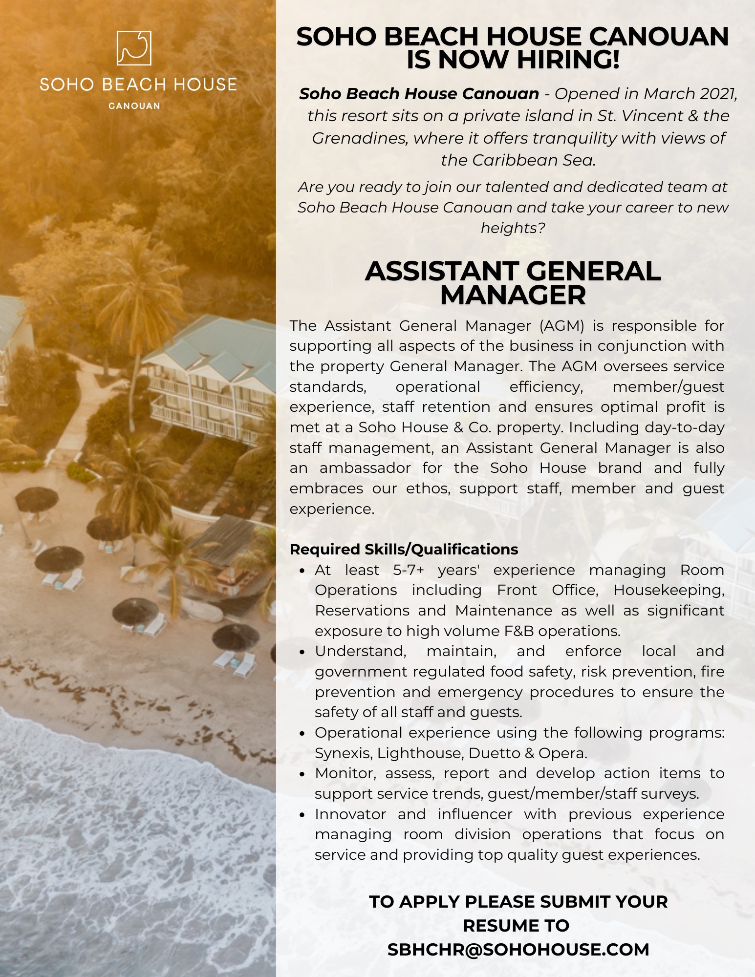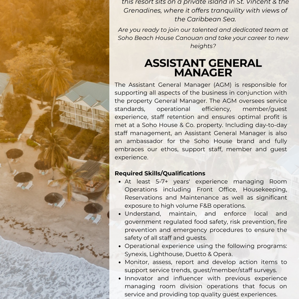 Soho Beach House Canouan Seeks Assistant Manager