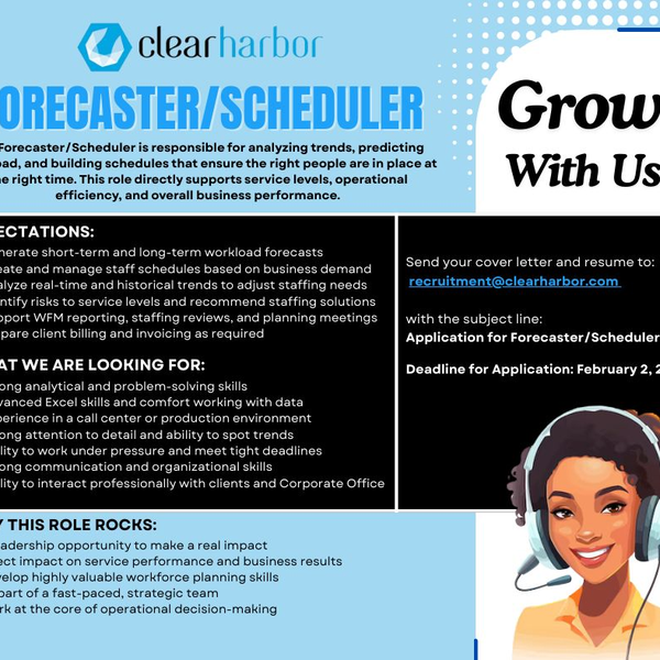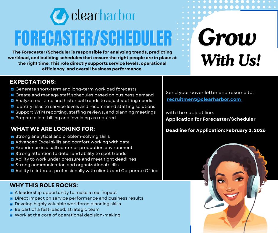 The Forecaster/Scheduler analyzes trends, predicts workloads, and creates schedules to ensure the right people are in the right place at the right time. This role directly supports service levels, operational efficiency, and overall business performance.