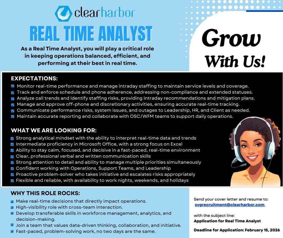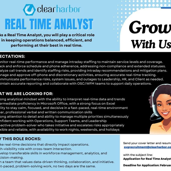 Clear Habour Saint Vincent seeks Real Time Analyst