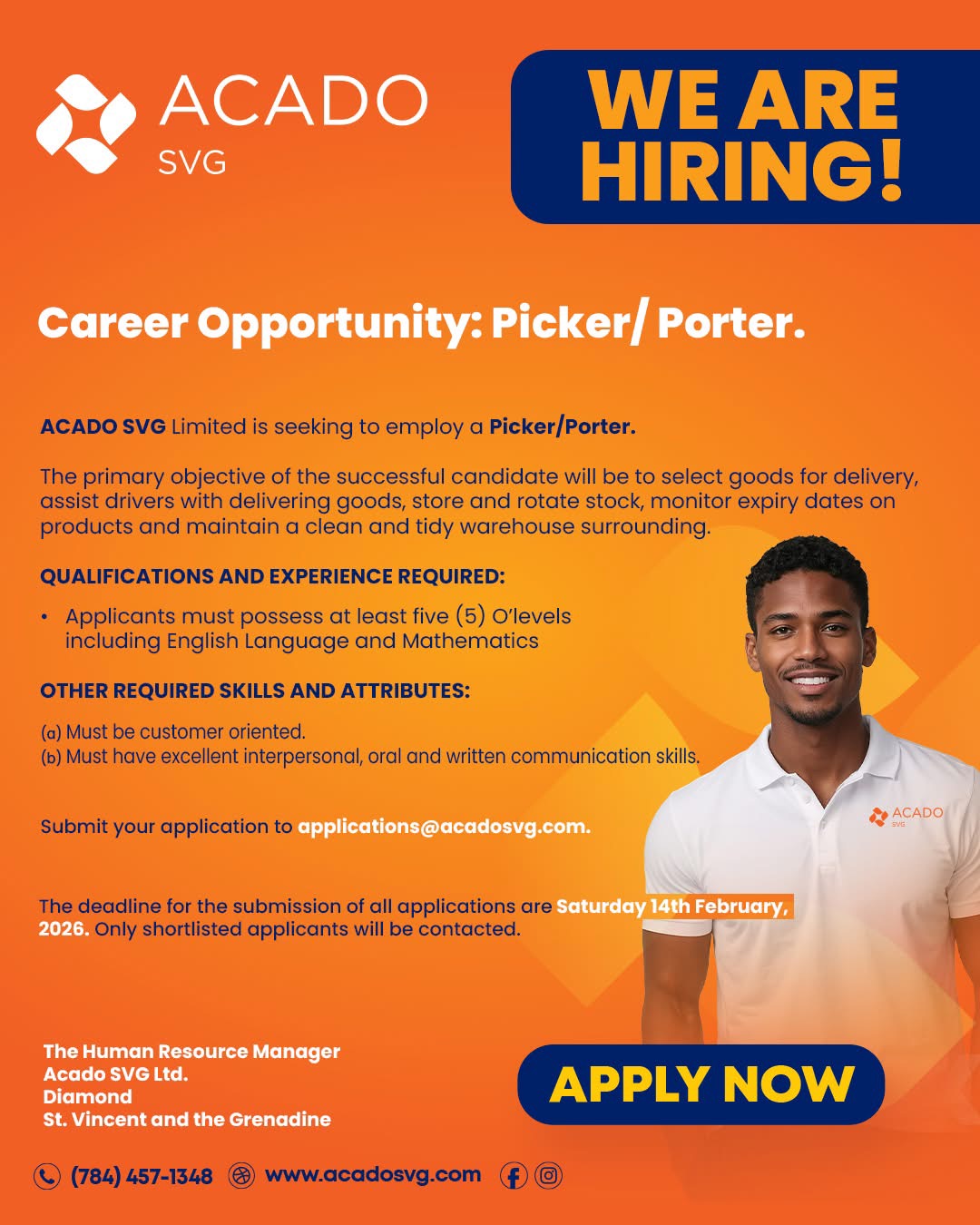 ACADO SVG Limited is seeking to employ a Picker/Porter.