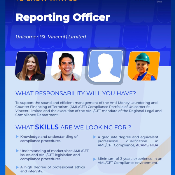 • Minimum of 3 years experience in an AML/CFT Compliance environment.